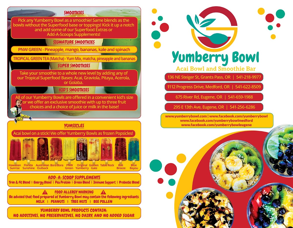 If you're in the mood for something fresh and vibrant, the Yumberry Bowl Grants Pass North Menu is the place to be. Located at 136 NE Steiger St in Grants Pass, OR, this cozy spot serves up an array of delicious bowls that pack in all the right flavors. Whether you're craving something sweet, savory, or a mix of both, their menu has something for everyone.