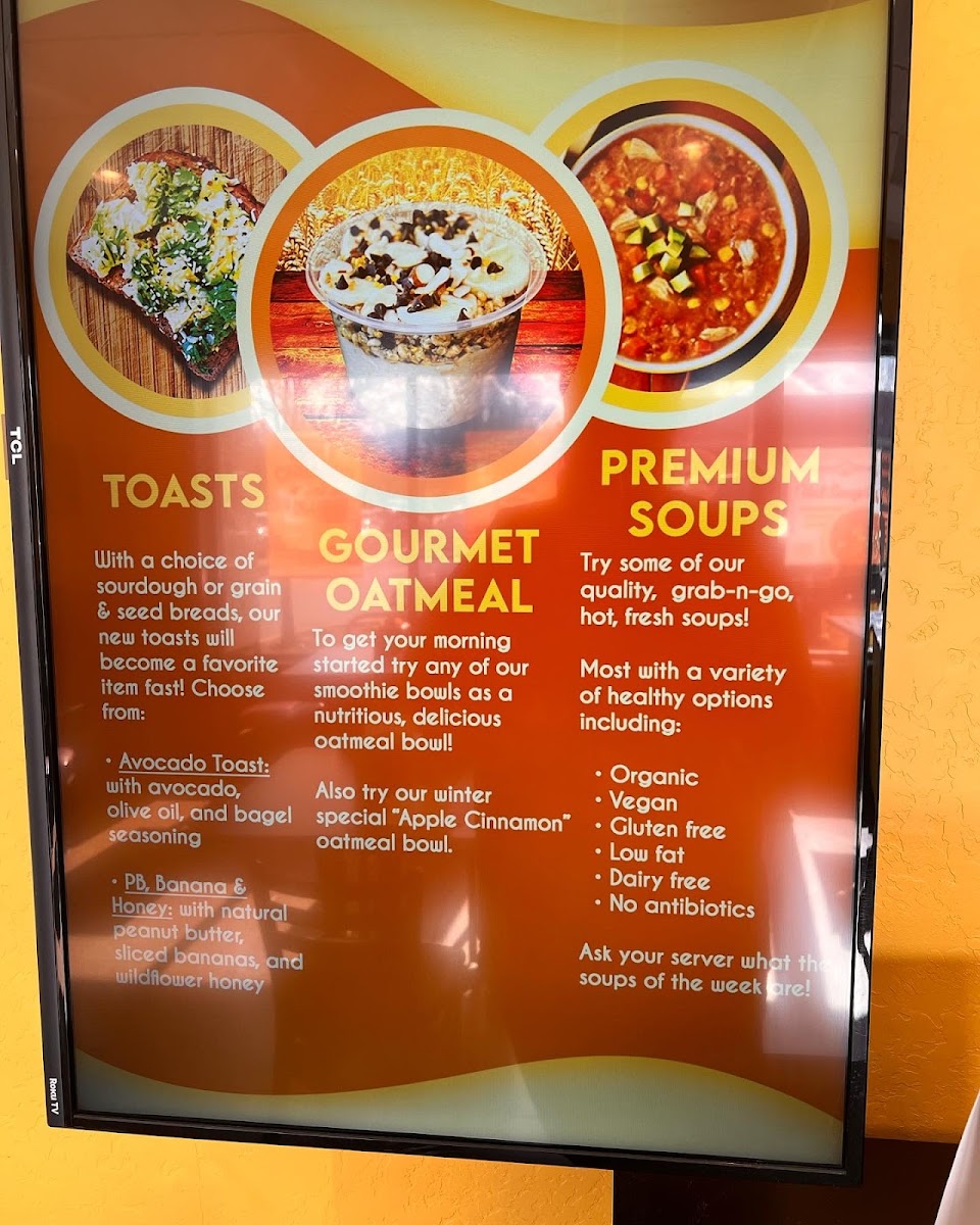 From smoothie bowls overflowing with fresh fruit to hearty grain bowls topped with colorful veggies, the options here are as satisfying as they are healthy. The variety of toppings allows you to build your perfect bowl, whether you’re after a protein boost or just something light to energize your day. Everything is made with high-quality ingredients, so you can always feel good about what you’re eating. It’s the perfect place for a quick meal or a relaxing break during your day.